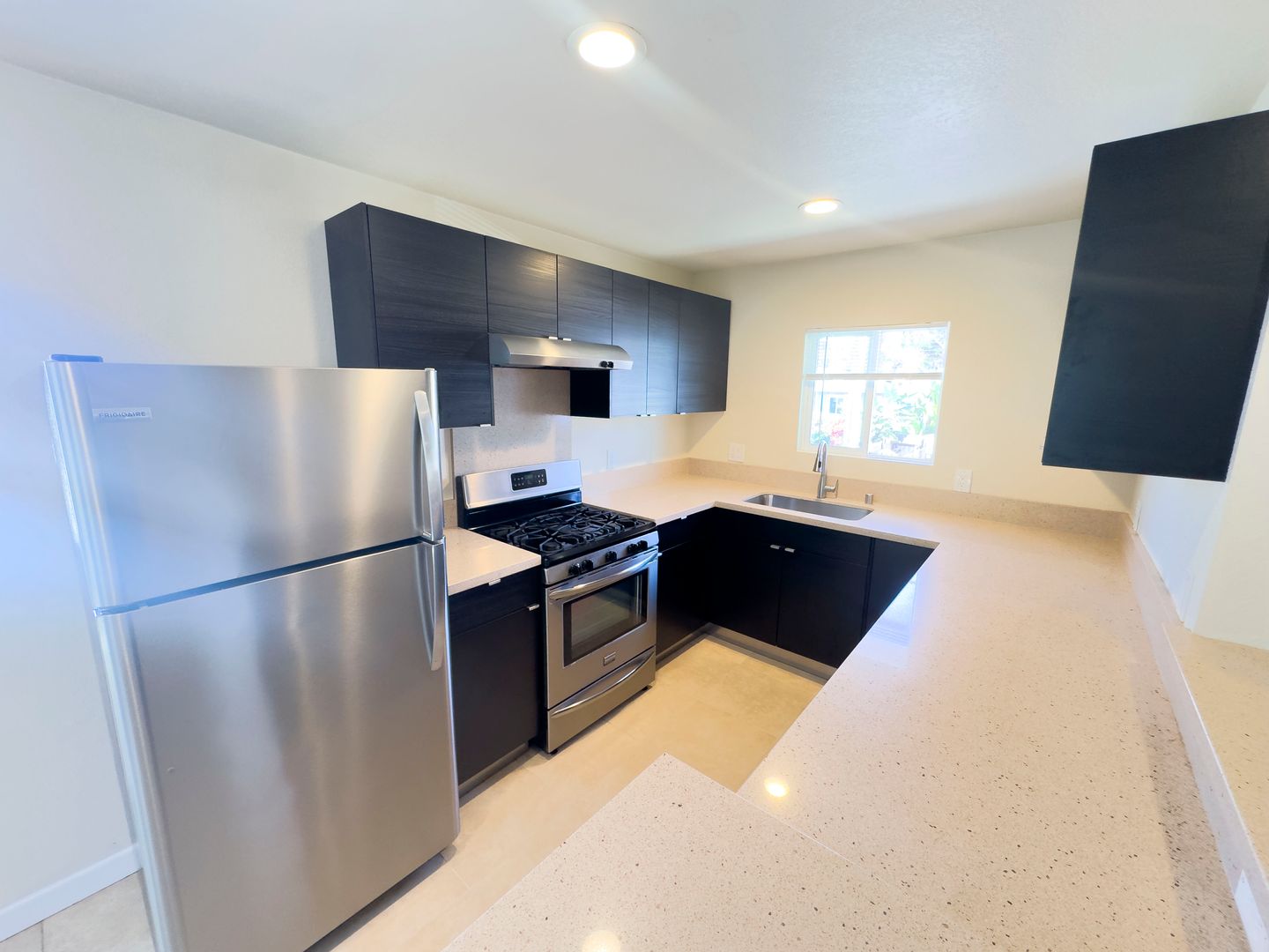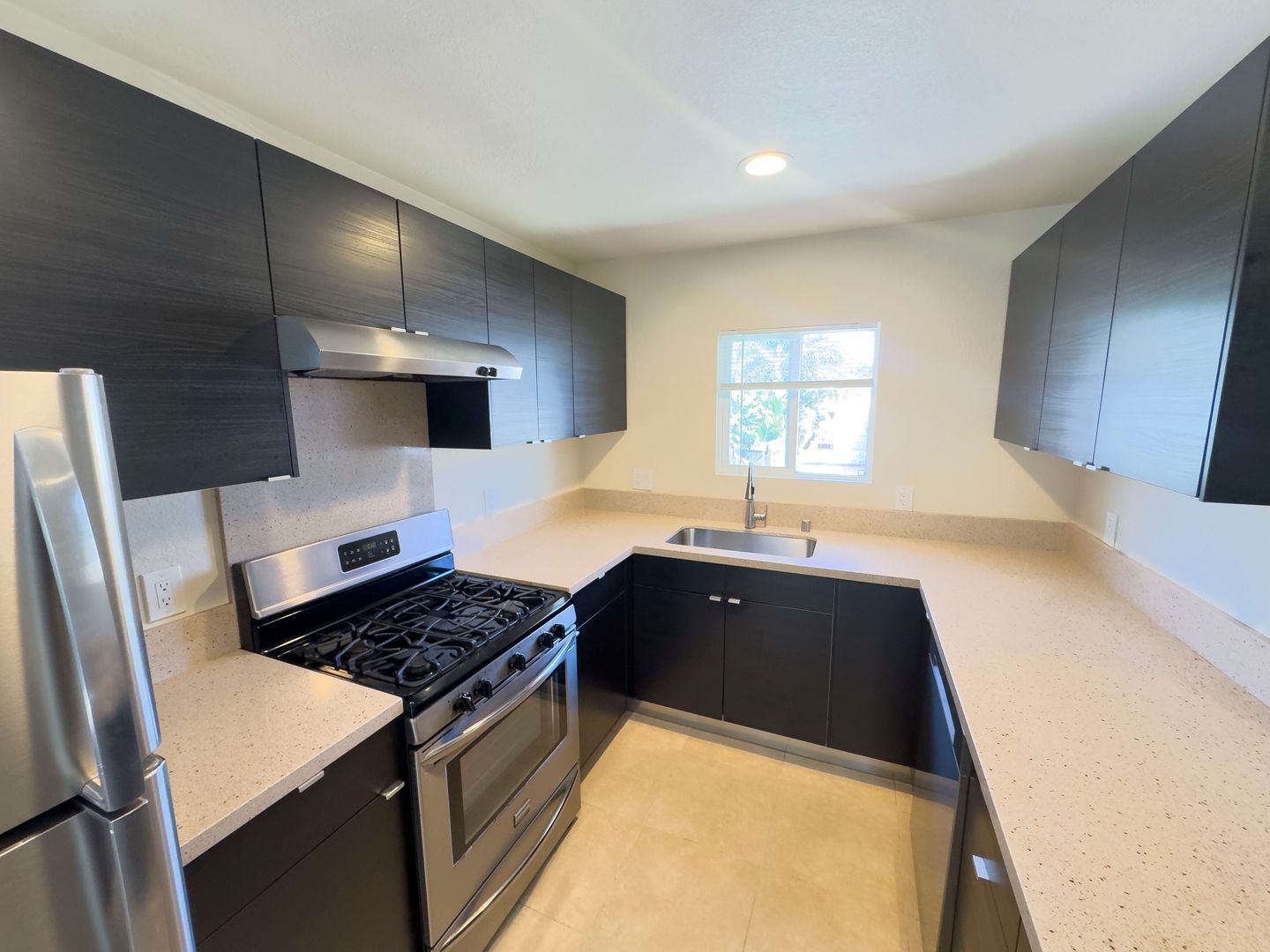 Solomon Property Management & Sales is proud to offer this 2 bedroom 2 bathroom 757 sq. ft. move-in ready upstairs end unit apartment! Enter to kitchen and living room with porcelain tile floors. Down the hall you will find a full bathroom and both bedrooms with the primary bedroom having on on suite full bath. The kitchen is equipped with a stainless steel gas range and dishwasher and Quartz countertops. The bedrooms are bamboo hardwood flooring. 1 car detached garage is included as well. Community patio in the front of the property. Gated access at the front and rear of the property. Coin op laundry room on site.
