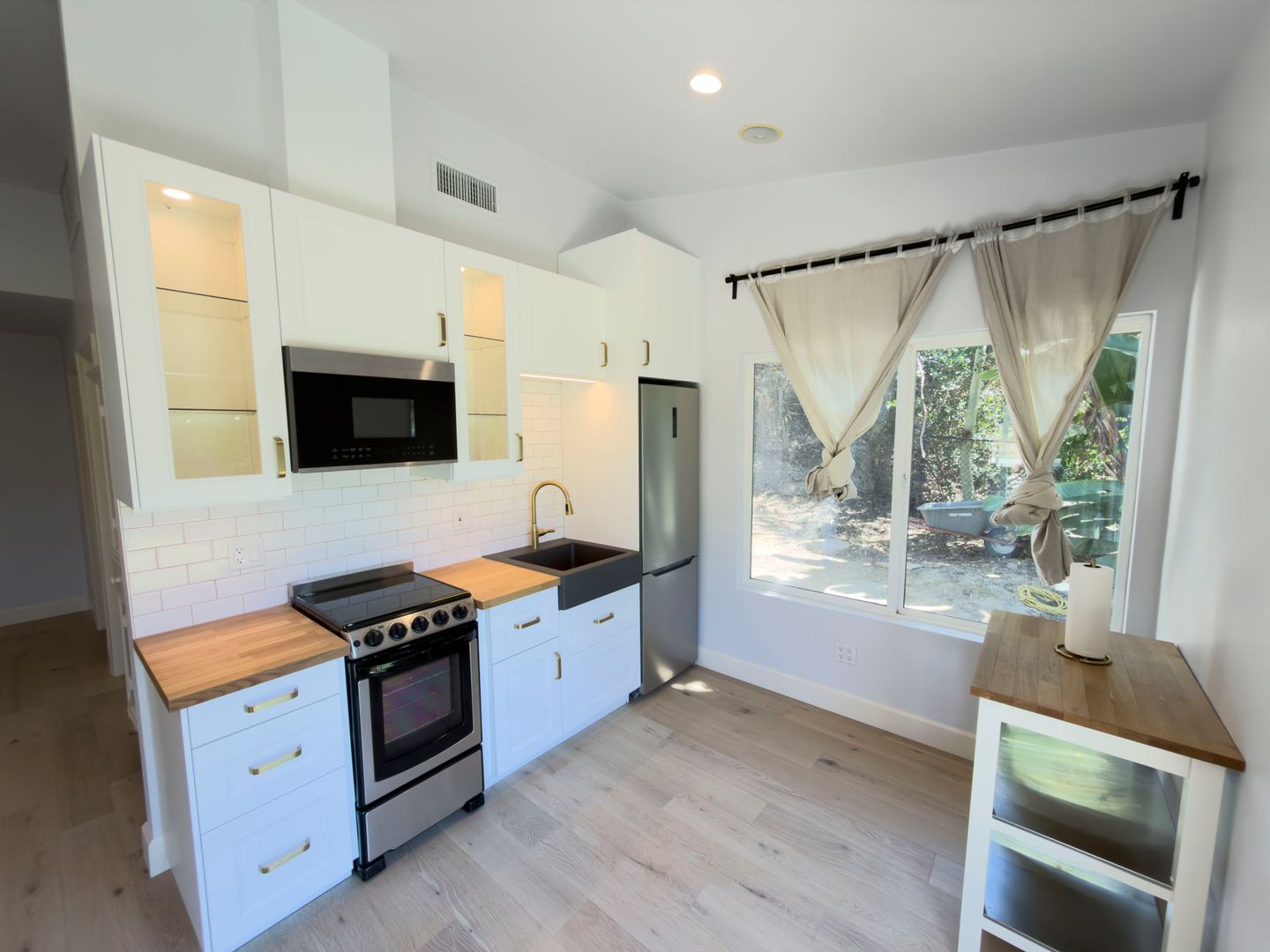 The pool house features a well-equipped kitchenette with gas range, microwave and refrigerator, and includes its own washing machine and dryer. The unit does have Air Conditioning.